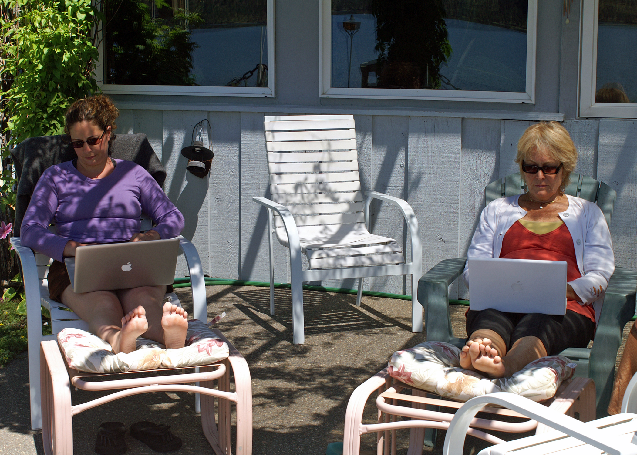 KONICA MINOLTA DIGITAL CAMERA Previous Next Published June 28, 2011 at 2100 × 1500 in Oregon writing retreat Sarah and June during morning writing session. — Photo by Nancy Woods