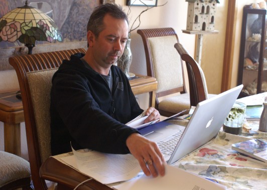 KONICA MINOLTA DIGITAL CAMERA Previous Next Published June 28, 2011 at 2100 × 1500 in Oregon writing retreat Howard writing during morning writing session. — Photo by Nancy Woods