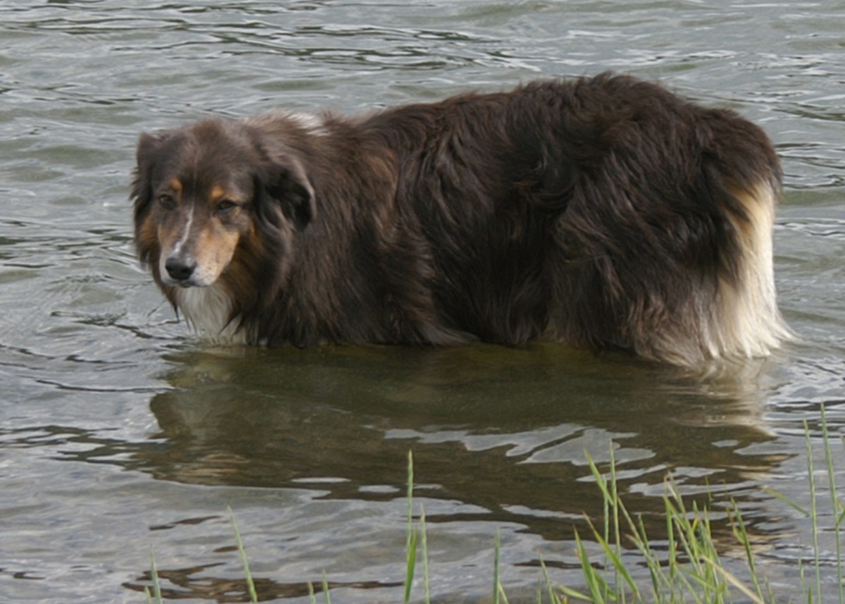 KONICA MINOLTA DIGITAL CAMERA Previous Next Published June 28, 2011 at 2100 × 1500 in Oregon writing retreat Judo takes a dip in the lake. — Photo by Nancy Woods