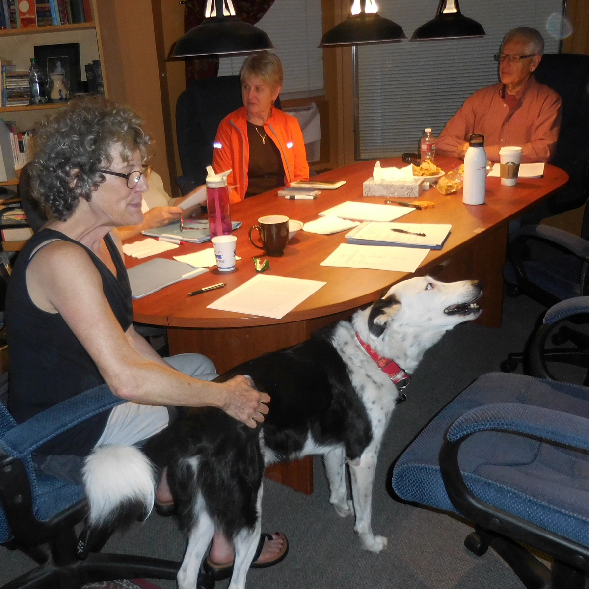 For the second time in less than two weeks, a cute canine showed up in my writing class. This time it was Catherine’s Stella who joined Ann, Jamie and me. Maybe I should offer a class for dogs who write.